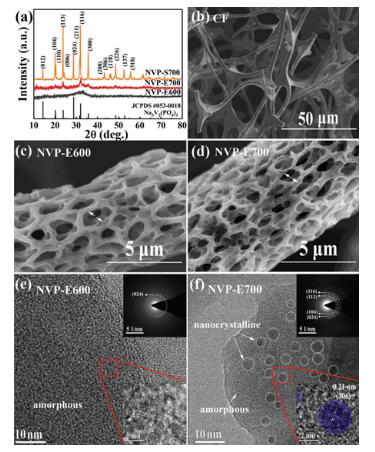 图1. 无序结构Na3V2(PO4)3材料的形貌和结构表征。