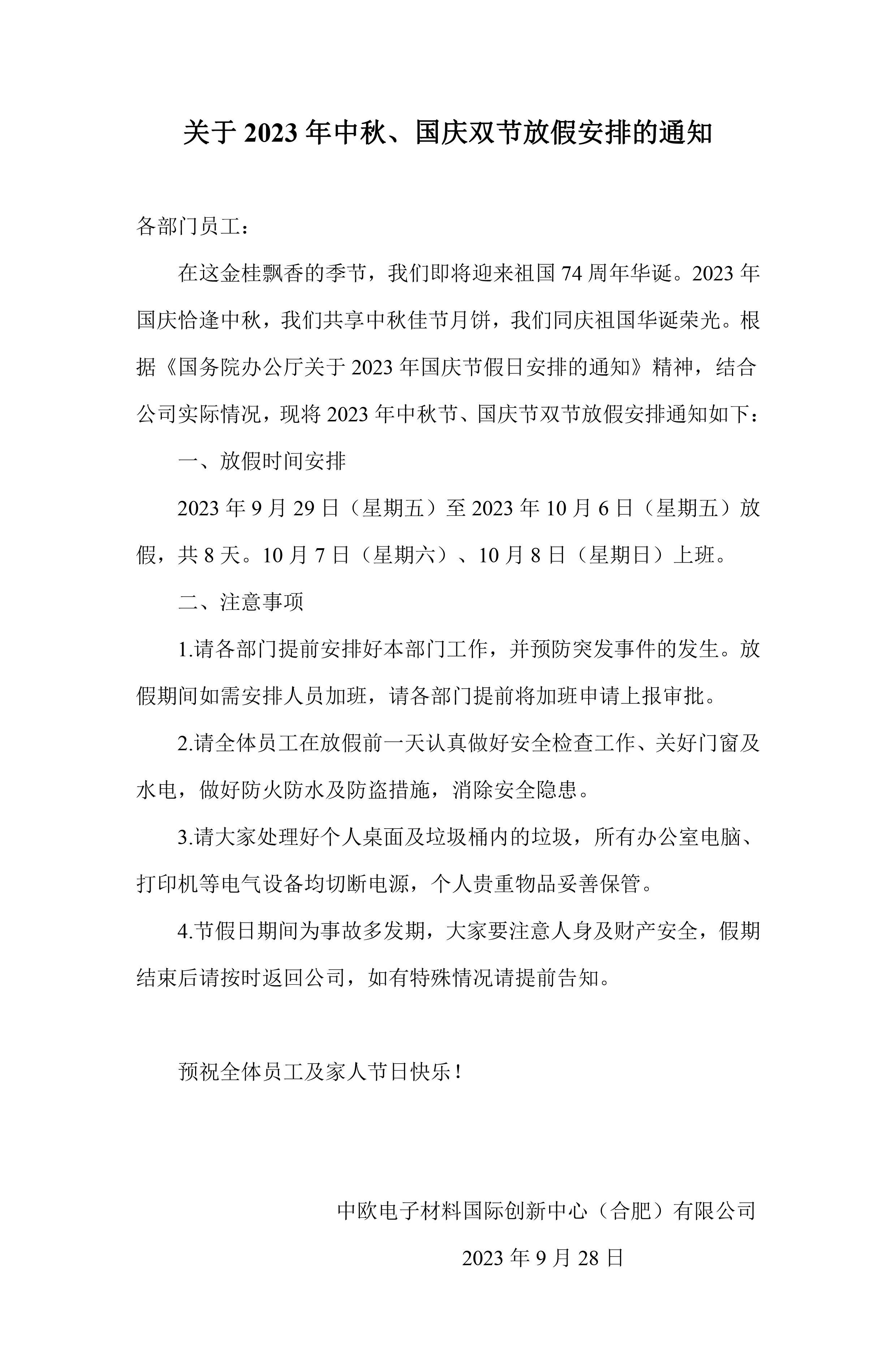 关于开展2023年国庆中秋双节节前安全大检查的通知