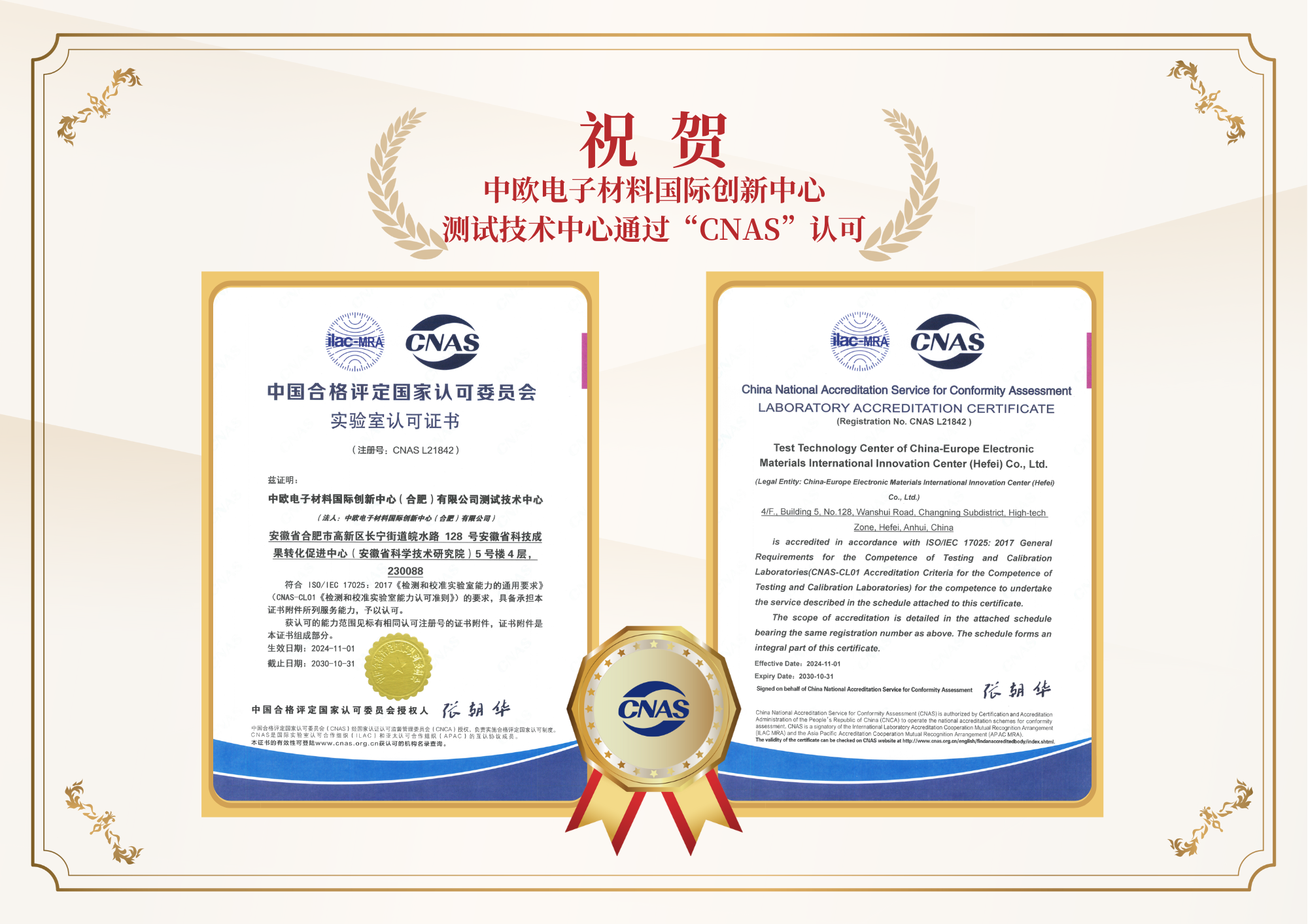 2024年11月开云游戏平台(合肥)有限公司测试技术中心(以下简称“测试技术中心”)顺利通过了中国合格评定国家认可委员会资质评审及合格评定,成功获得CNAS实验室认可证书。